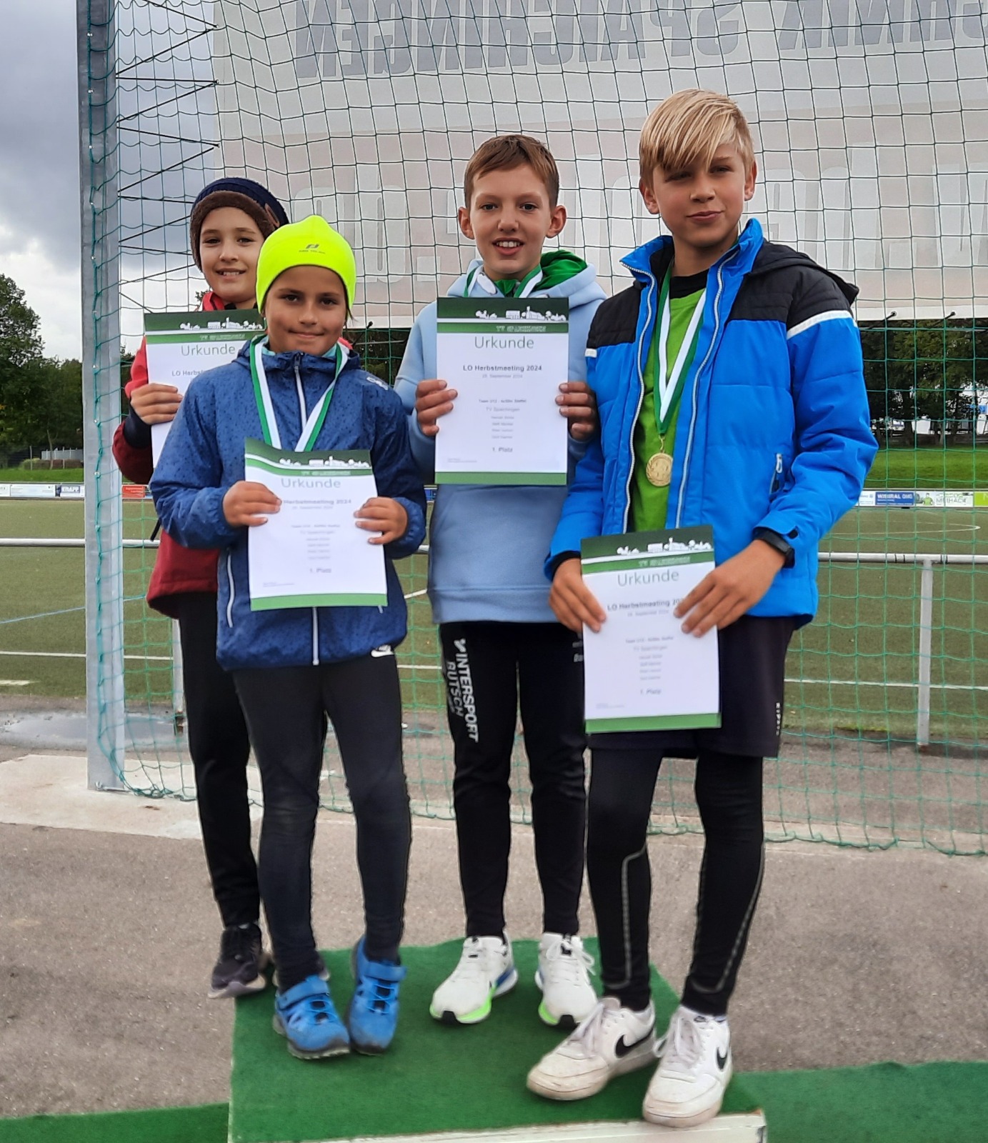 Bei der M14 gingen insgesamt 5 Medaillen an Luca Vachon und Noah Müller. Mit tollen 1,35 m im Hochsprung verbesserte Luca nicht nur dort seine persönliche Bestleistung zum Saisonabschluss, sondern auch über 100 m und im Kugelstoßen. Aber auch Noah verbesserte sich mit der Kugel auf 7,35 m.