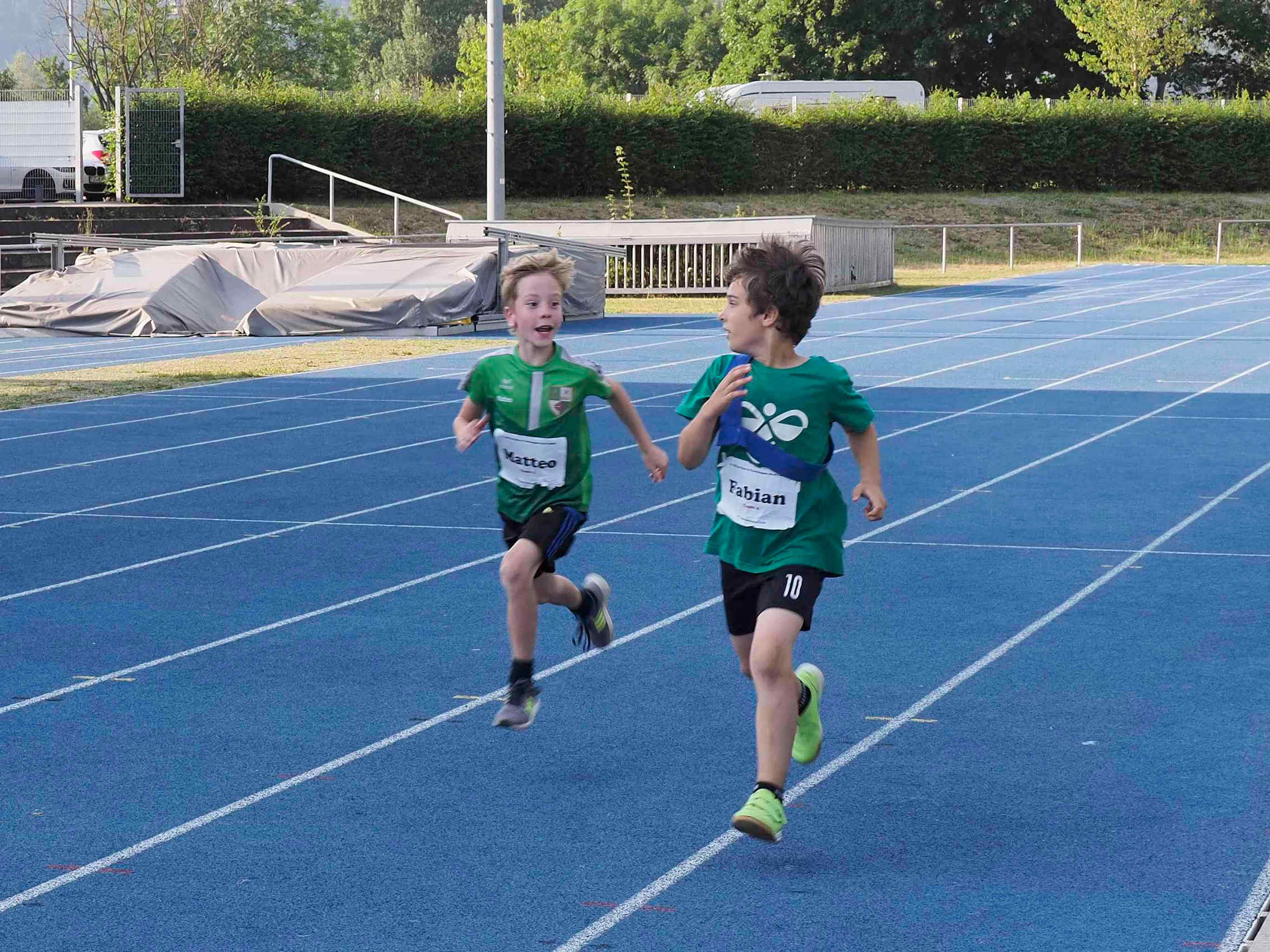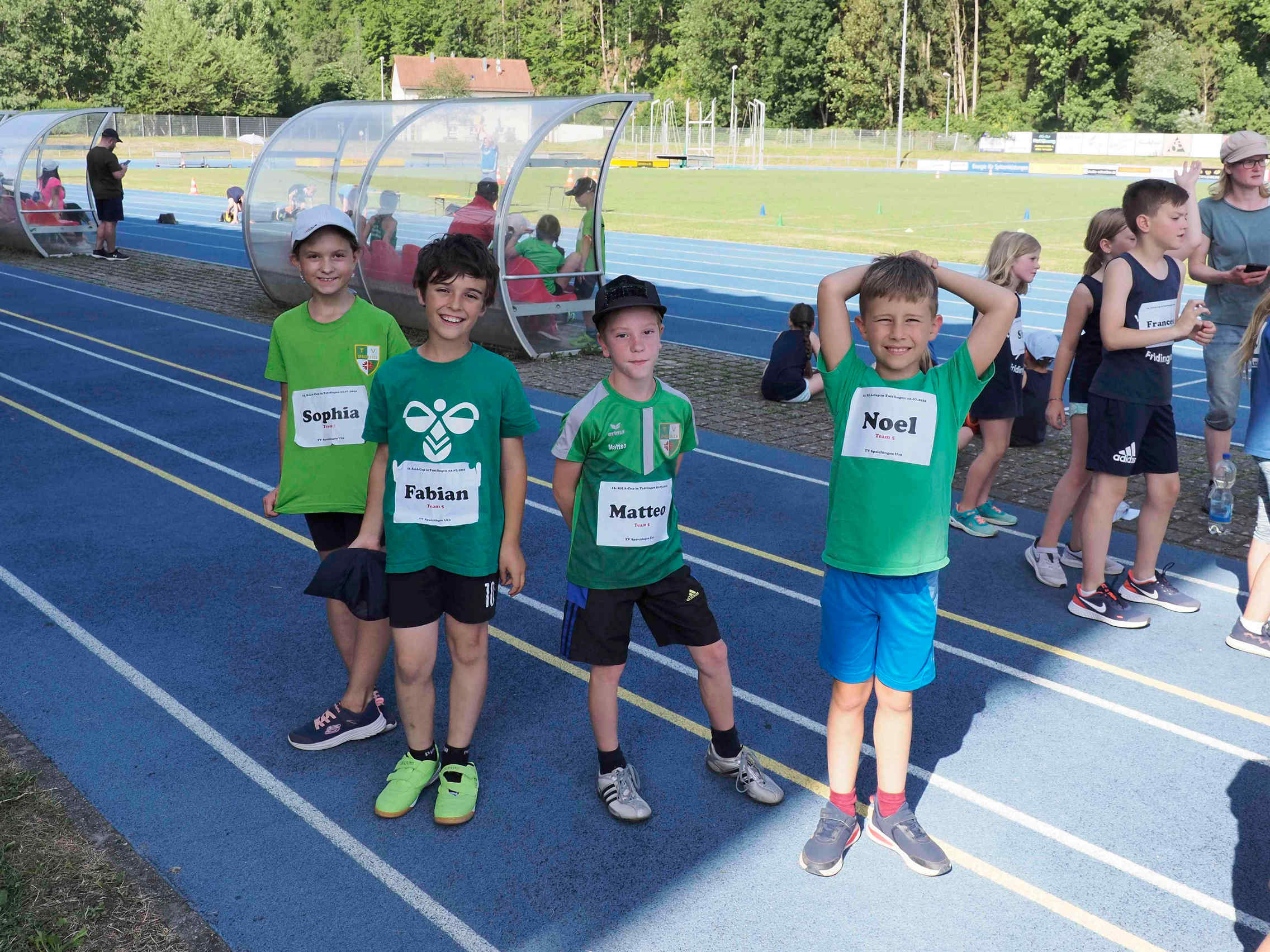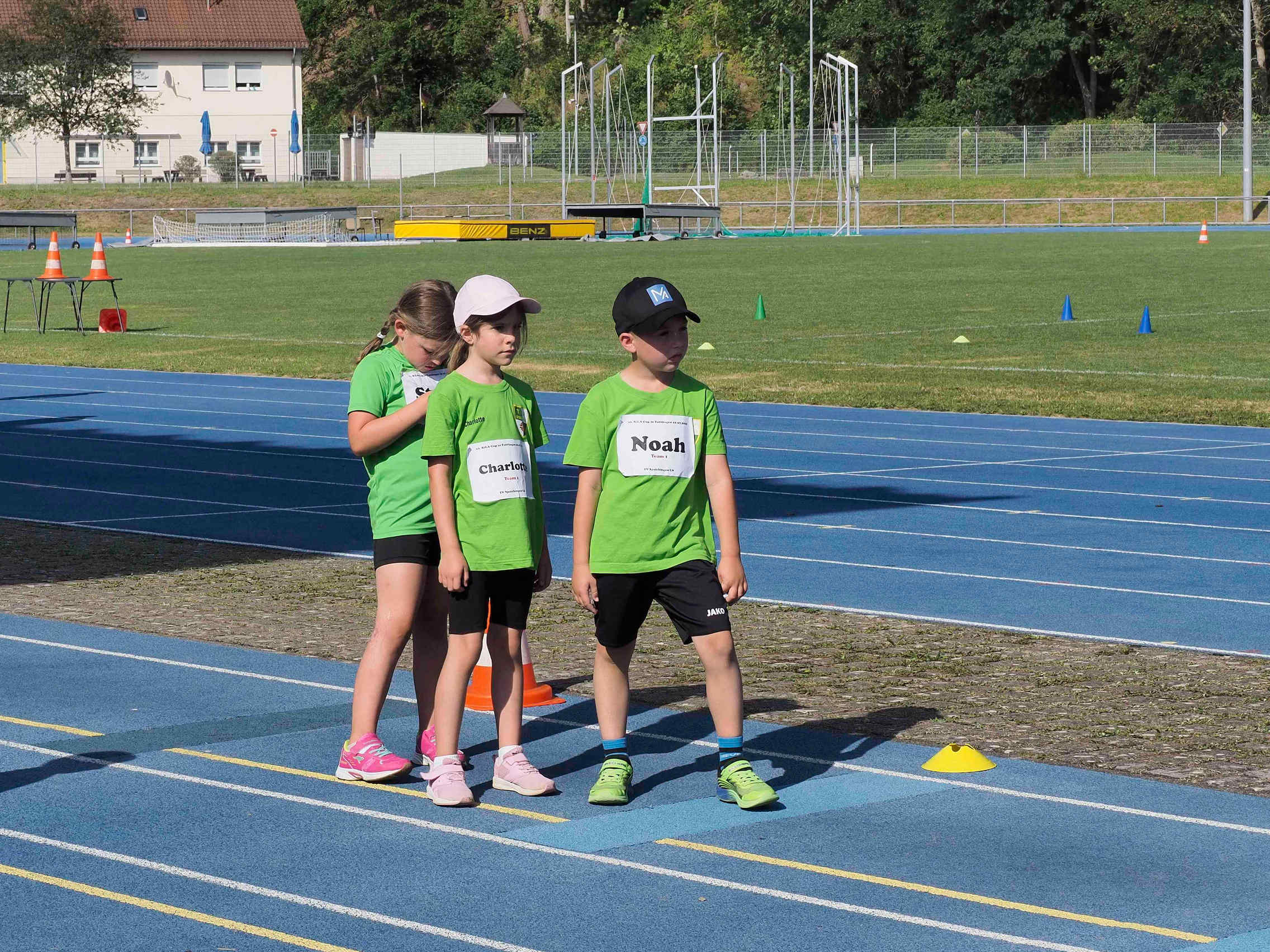 Bei sommerlichen Temperaturen und einer Rekordbeteiligung von 93 Kindern in 19 Mannschaften aus dem Leichtathletikkreis Tuttlingen, starteten unsere Jüngsten Stella, Noah und John zusammen mit drei Mädels vom TV Möhringen im Team „ Die flotten Hasen“. In den Disziplinen 2 x 30m Sprint, Zielweitsprung, Schlagball und Hindernisstaffel waren sie voll dabei und wurden am Ende mit dem 2. Platz belohnt. Dass die 6 Kinder super miteinander harmonierten, zeigten sie am Schluss mit einem Sieg bei der 30m-Hindernis-Sprint-Staffel. Tolle Leistung. Weiter so.