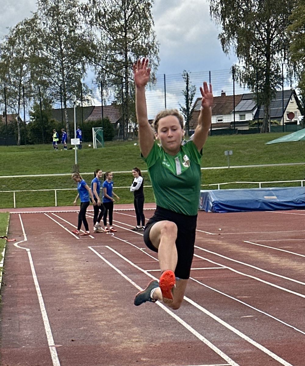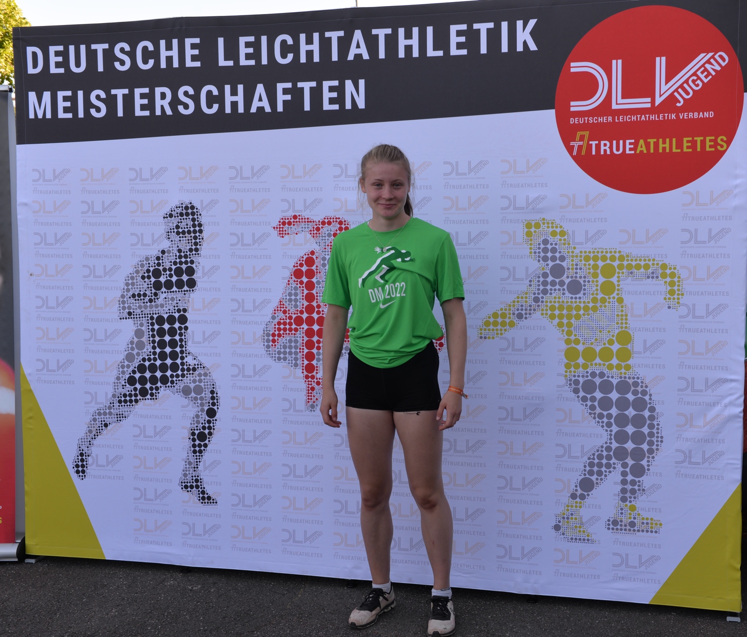 Der Endlauf über 100 Meter Hürden war dann ein Rennen, das für die junge Athletin mit einer neuen persönlichen Bestzeit und erneute Verbesserung ihres eigenen Kreisrekordes endete. Nach 14,22 Sekunden bei 0,8 m Gegenwind freute sie sich mit Trainer Fabian Reisch und ihrem Anhang über den zweiten Platz und die Übergabe der Silbermedaille.Süddeutsche Meisterschaften