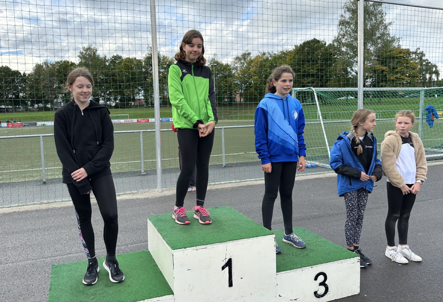 Bei unserem Team „The Jumping Kids“ in der Altersklasse U12 fielen am Wettkampftag 4 Kids krankheitsbedingt aus. Mit Frida Marie, Sophie, Selma, Lina, Jana und Lena traten wir schlussendlich mit einer reinen Mädelsgruppe an, was gerade beim Werfen einen erheblichen Nachteil bedeutete. Auch hier lagen die Mannschaften beim 50m-Sprint, Additionsweitsprung, Schlagball und der 4x50m Hindernis-Sprintstaffel sehr eng beieinander und bis zum Schluss wusste keiner, wer am Ende gewinnen würde. Es war ein Krimi, wenn man die Endauswertung liest. Leider hatten wir hier auch großes Pech. Obwohl wir in den einzelnen Disziplinen einmal den 3. den 4. und zweimal den 5. Platz belegten, wurden wir zum Schluss nur Sechster. Zwischen dem Platz 1 und 6 lagen am Ende nur 4 Punkte!! Alleine bei der Staffel lag die Endzeit alle 7 Teams zwischen 1:18 und 1:23 Minuten.