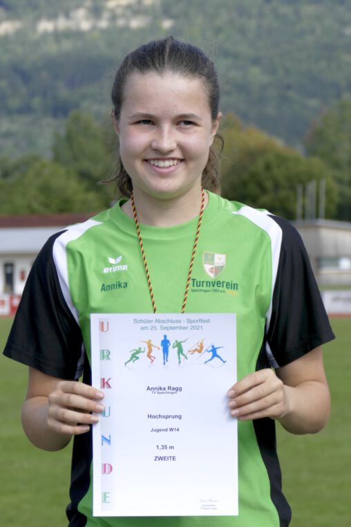 Hochsprung: 2. Annika Ragg (TV Spaichingen) 1,35 m. Kugelstoß: 3. Annika Ragg (TV Spaichingen) 7,55 m.