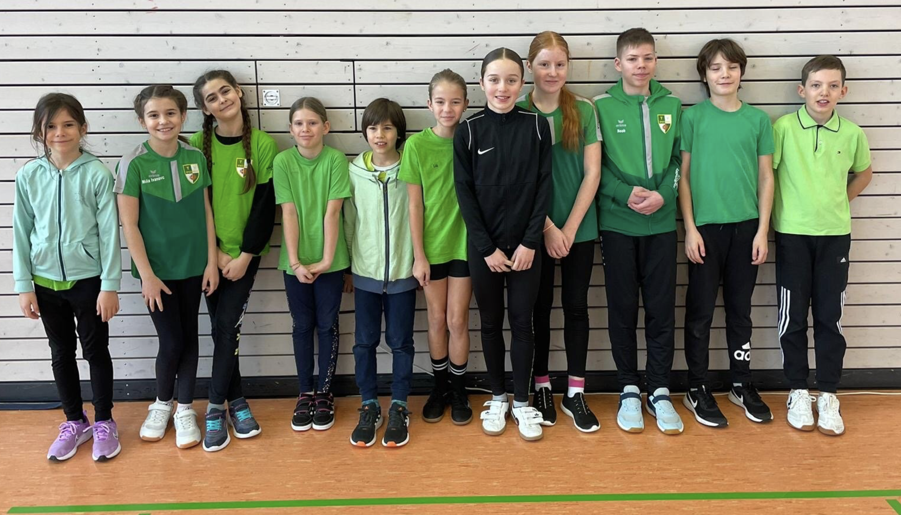 Enttäuschte Gesichter gab es leider in der Altersklasse U12. Wir mussten uns am Ende mit dem 4. Platz zufriedengeben. An diesem Tage war die Mannschaft des TV 05 Fridingen nicht zu schlagen. Aber es gab dahinter einen knappen Dreikampf um die Plätze 2 bis 4. Alle Entscheidungen in den 4 Disziplinen (2 kg Medizinball-Stoßen, Scher-Hochsprung, Fünfsprung, Hindernis-Sprintstaffel) waren sehr eng. Nachdem wir in den ersten drei Disziplinen immer den 3. Platz belegt hatten, gingen wir hochmotiviert zu unserer eigentlichen Paradedisziplin der Hindernis-Sprintstaffel. Trotz der vielen Anfeuerungsrufe unseres Fanblocks aus Eltern und jüngeren Sportler konnten wir hier nicht an unserer Vorjahreserfolge anknüpfen. Aufgrund kleiner Unachtsamkeiten beim Wechsel und einem Strauchler bei zwei Hürden und der damit verbundenen Zeitstrafe, belegten wir am Ende nur den 5. Platz. Glücklicherweise hat sich hier niemand verletzt und das Rennen konnte zu Ende gebracht werden. Am Schluss trennten nur 8 Sekunden die Plätze 1 und 5. So knapp lagen alle Mannschaften zusammen. Dies alles zeigt wieviel Potenzial in unserem Team „Die jungen Wilden“ mit Ben, Noel, Danil, Melia, Aleyna, Steffi, Hannah, Alena, Lia und Belinda steckt. Beim nächsten Wettkampf am 07.06.2024 in Fridingen werden die Karten neu gemischt und vielleicht stehen wir dann wieder weiter vorne. Nicht die Köpfe hängen lassen.