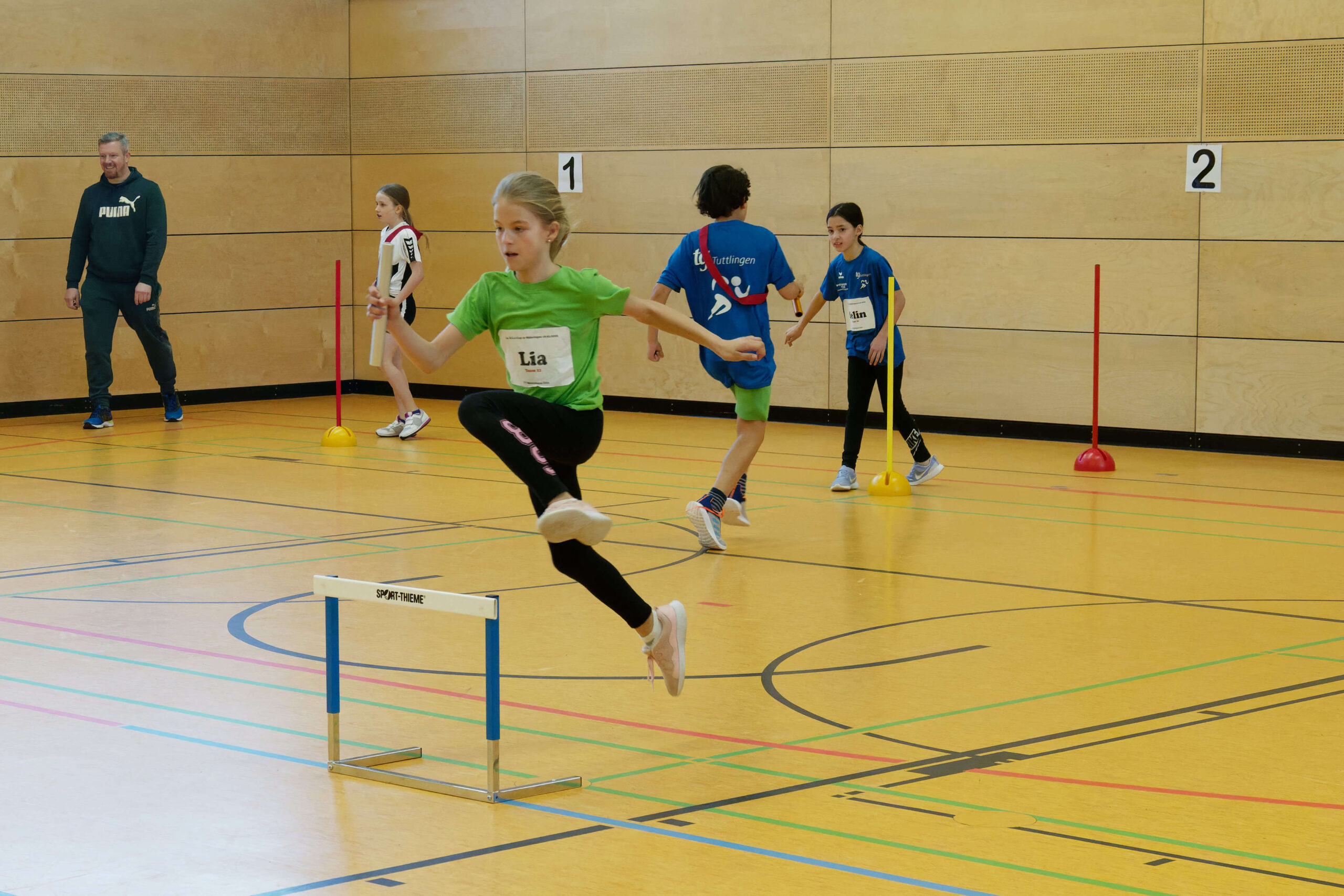 (Tanja Ragg) Am Samstag fand in der Möhringer Sporthalle der Auftakt der Kinderliga 2023 statt. Verschiedene Team aus Tuttlingen, Fridingen, Möhringen, Schura, Trossingen und Spaichingen suchten die beste Mannschaft in den Altersklassen U8, U10 und U12. Jede Mannschaft bestand aus 4 bis 7 Kindern und absolvieren 4 verschiedene Disziplinen. Dieses Mal stammten die Disziplinen aus den Bereichen Hoch-Weitsprung, Dreisprung, Stoßen und der Sprintstaffel.