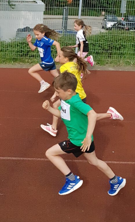 In den Disziplinen 2 x 40m Sprint, Weitsprungstaffel, Schlagball und 40m-Hindernis-Sprintstaffel traten für unser Team Sophia, Alena, Ellie, Aaliyah, Ben, Noel und Emanuel an. Bis auf den Ballwurf konnten wir voll mitmischen, wobei unsere Stärke an diesem Tage klar beim Sprint lag. Nach sehr knappen Entscheidungen in den Disziplinen Weitsprungstaffel und der Staffel, mussten wir uns mit dem 5. Platz zufriedengeben. Hier kann sich das Blatt beim nächsten Wettkampf vielleicht zu unserem Gunsten wenden, wenn alle wieder fit sind und auch andere Disziplinen angeboten werden. Also lasst den Kopf nicht hängen. Wir Trainer war trotzdem sehr zufrieden mit euch.
