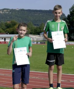 Auch Louis Armbruster konnte sich bei den 11-jährigen über zwei Silbermedaillen und eine Goldmedaille. Bei war es der Ballwurf, der ihm Gold einbracht. Dabei machte er es richtig spannend. Denn nur 50 Zentimeter legen zwischen ihm und dem Zweiten. Simon Hozdek wurde in diesem Wettbewerb mit Bronze belohnt. Silber gebe es für ihn im Hochsprung.